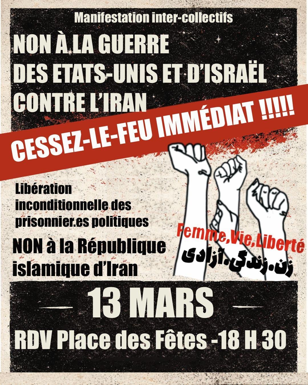 Nous appelons à rejoindre la Marche contre les guerres d’agression et en solidarité avec les peuples d’Iran, vendredi 13 mars à 18h30 à Paris, Place des fêtes.