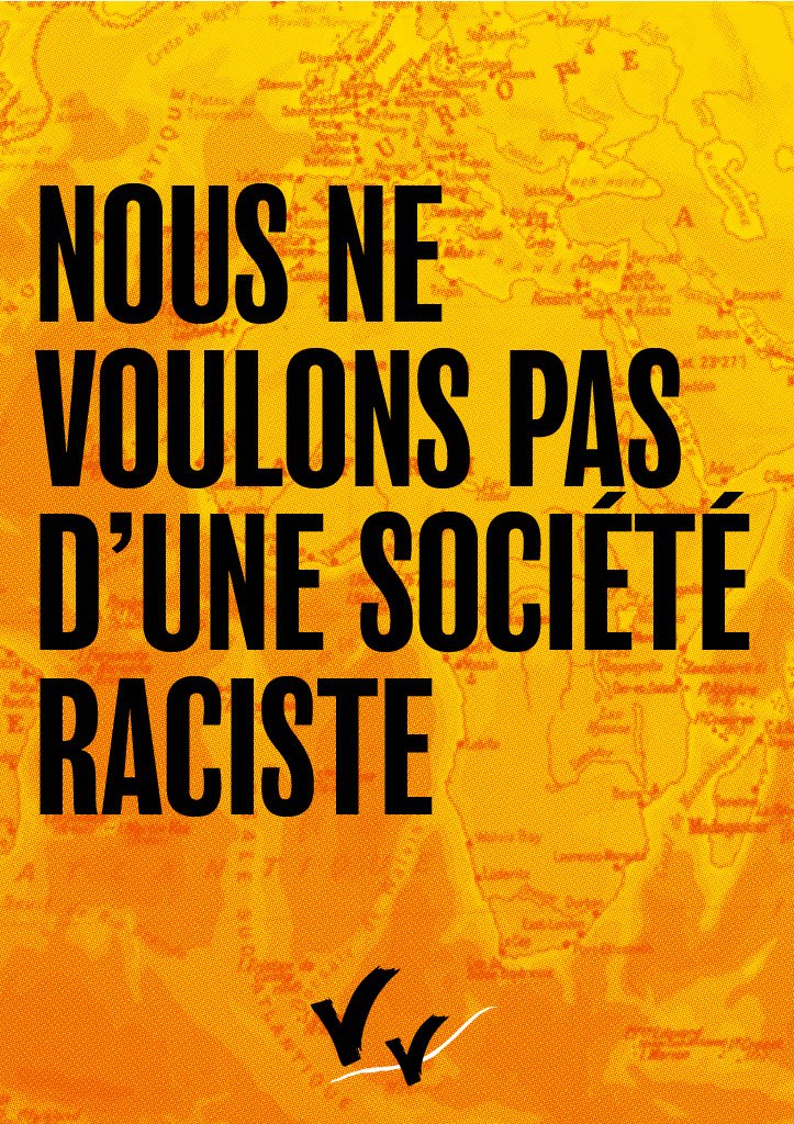 Nous ne voulons pas d’une société raciste. Ensemble, construisons la société dans laquelle nous voulons vivre, une société de solidarité, de justice, et de respect des libertés.