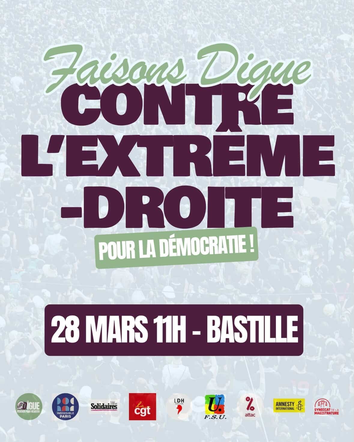 Signataires : La Digue, LDH (Ligue des droits de l’Homme), Amnesty International, Indivisible Paris, CGT, Solidaires, FSU, Attac, Syndicat de la magistrature