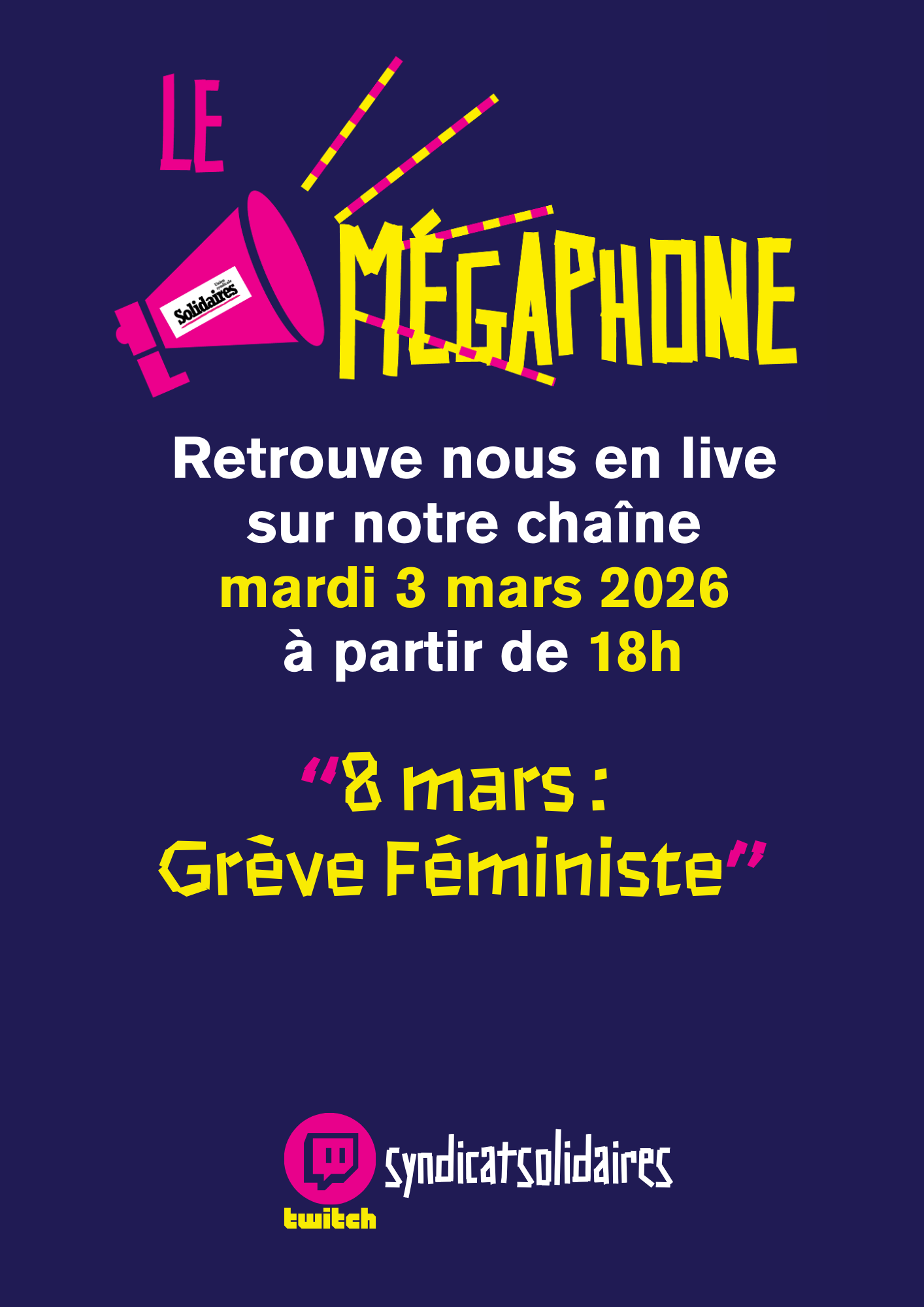 Le mégaphone revient mardi 3 mars à 18h ! RDV sur notre chaine Twitch pour discuter du "8 mars: Grève Féministe !"