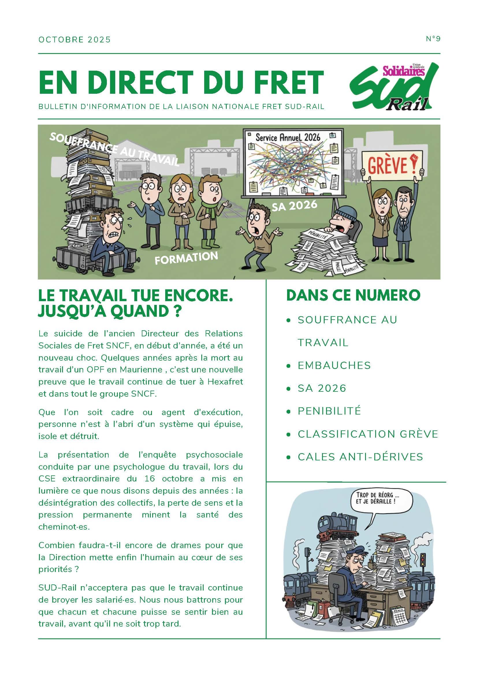Ci-joint le bulletin d'information de la liaison nationale Fret de SUD-Rail.